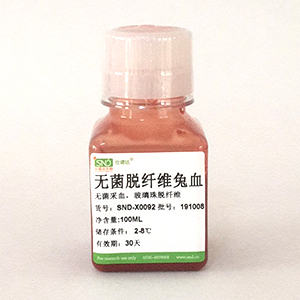 封闭系统里健康兔无菌采血,玻璃珠摇床脱纤而成,天然新鲜血液,颜色鲜红,无任何细菌、真菌、支原体、衣原体,不添加任何抗凝剂、防腐剂、抗生素,适应于血平板生产及细菌培养生物医学研究基础等